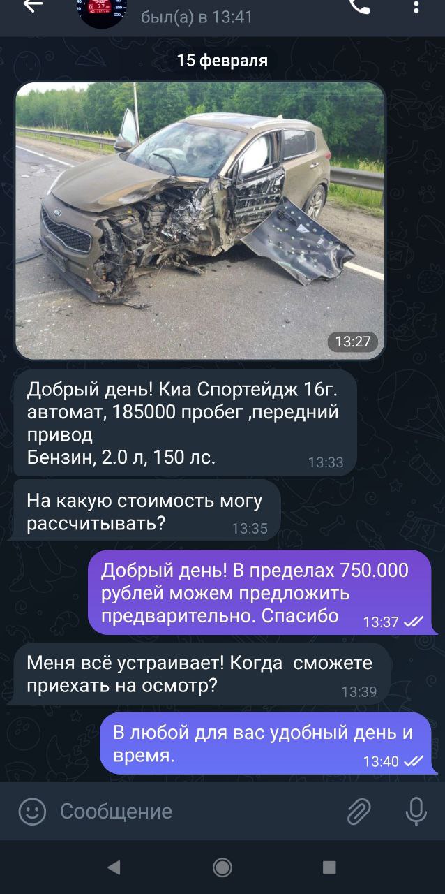 Звоните нам в офис по телефону +79032838022 и задавайте любые вопросы, объясним как проходит оформление, эвакуация битого автомобиля и условия оплаты сразу всей суммы наличными за пару часов после оценки по фотографии.